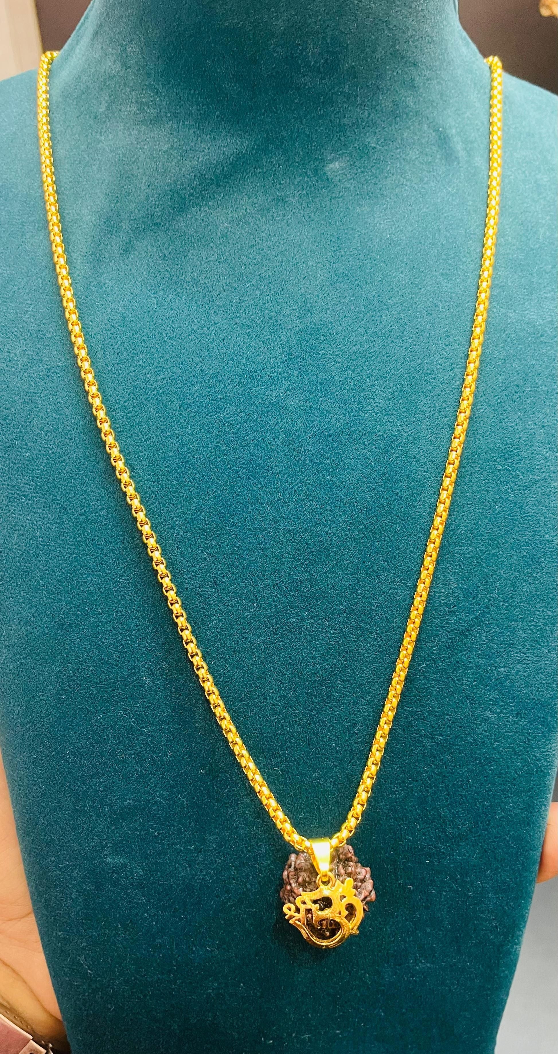 Product Name: Om Rudraksha Pendant With Chain Package Contains: It has 1 Pendant Chain Material: Alloy Color: Gold Occasion: Casual Combo: Pack of 1 Ideal for: Men Weight: 200
